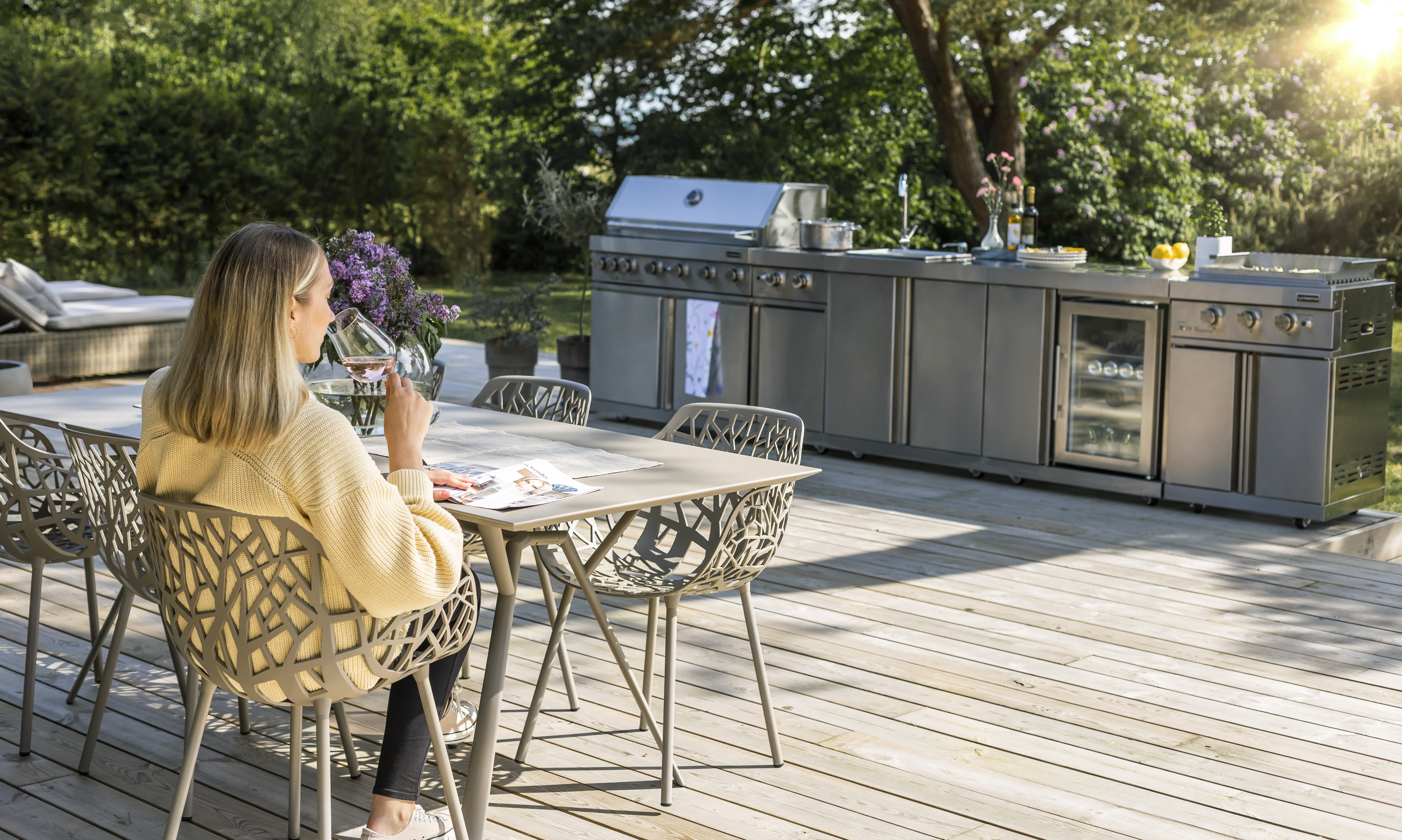 Lorsque le printemps arrive et qu’il est temps de sortir le barbecue, pourquoi ne pas amener toute la cuisine à l’extérieur ? Pour beaucoup, la préparation des repas représente une coupure dans le quotidien. Mais l’enthousiasme s’émousse lorsque l’on est enfermé devant les fourneaux alors que le reste de la famille profite du beau temps dans le jardin. La cuisine extérieure permet alors de concilier tous les plaisirs.
